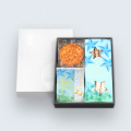 - 春は桜、夏は星、秋はもみじ、冬は雪。春夏秋冬の季節のうつろいを表現したおかきです。