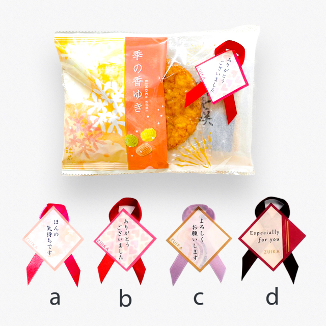 季節のあられ「季の香ゆき」と人気の「揚大丸」「味七咲」を小袋に詰合せました。お世話になった方々へ「さりげない感謝の気持ち」をお伝えします。配りやすく、皆様に喜ばれる美味しさです。